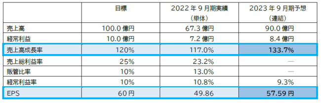 2022年9月期末時点での実績と2023年9月期予想での達成状況をまとめましたのでお知らせします。