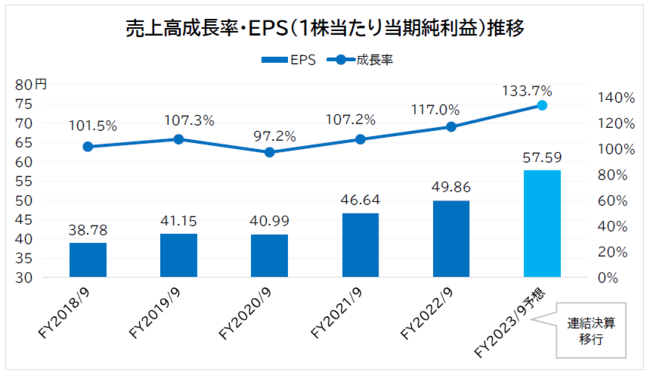 企業価値向上への取り組みにより、特に、売上高成長率とEPSは年々上昇傾向にあります。