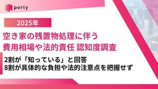 株式会社ポルティ(神奈川県川崎市、代表取締役:平 瑶平、以下「ポルティ」)は、全国の空き家オーナー(または相続予定の方)200名を対象に、空き家の残置物処理に伴う費用相場や法的責任についてどの程度認知しているかを調査しました。