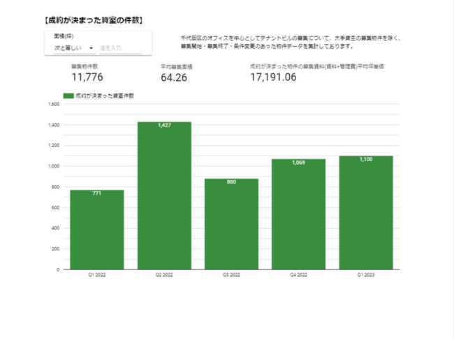 2023年第1四半期の成約面積は、70,886坪と前第1四半期を上回る状況です。