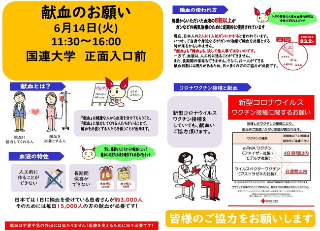 イベント名:「国際献血デー」国連大学にて~永続的且つ恒久的平和を希求し献血~