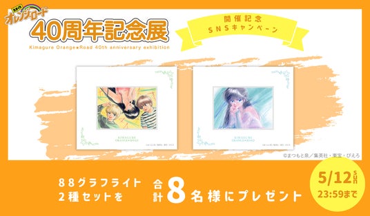株式会社VISION8(EDITION88アートギャラリー)は、2024年4月26日(金)~5月12日(日)に有楽町マルイ(東京都)、2024年6月15日(土)~6月30日(日)になんばマルイ(大阪府)にて、「きまぐれオレンジ☆ロード 40周年記念展」を開催いたします。
