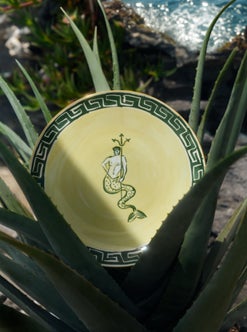 「イル ヴィアッジョ ディ ネットゥーノコレクションの新章は、2019年のジノリ1735とのコラボレーションから始まった物語を土台にしています。博物館のコレクションにあるギリシャの陶器や、海にまつわる神話の物語からインスピレーションを得ました。アマルフィレモン、スカイブルーに加え、テラコッタやパイングリーンといったダークなアースカラーなど、地中海の休日を連想させる新しいカラーパレットで、夏の雰囲気を思い起こさせたかったのです。ローマ神話に登場する海の神ネプチューンが、大海原を旅する姿を描いたこのコレクションでは、女神やタツノオトシゴなどのキャラクターが描かれています。私が描いた縁取りは 『完璧』ではなく、背景は手描きのような風合いです。転写により作られる製品で、どうしたら素敵な風変りさを伝えられるかを考えるのは、私にとって興味深いことでした。結局のところ、私は 『完璧』が好きではないのです!」とルーク・エドワード・ホールは語ります。