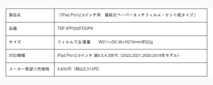 ・ サイズ展開はiPad mini、iPad10.2インチ、iPad10.9インチ、iPad Air、iPadPro11インチ、iPadPro12.9インチ用の6種類