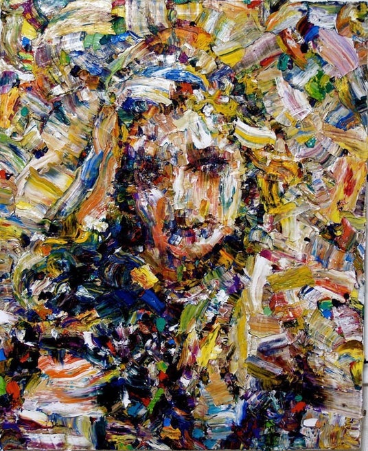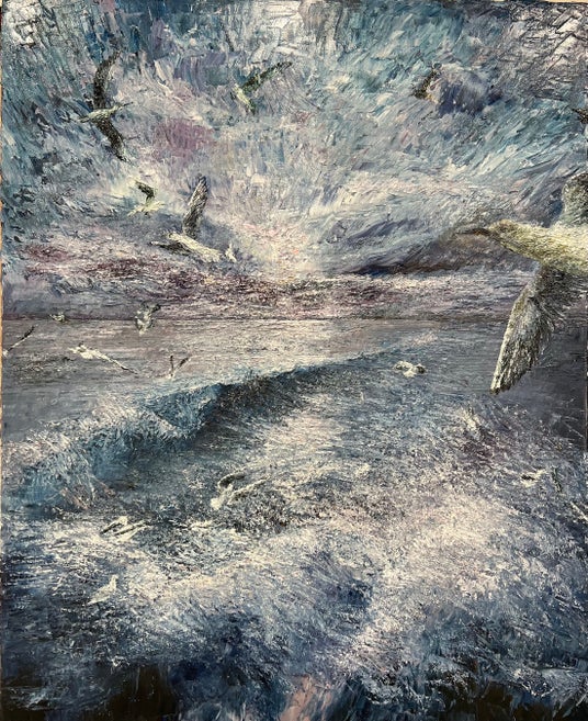 白い塊をキャンバスに積み上げて色を乗せて自作のハケで抉るように描く。絵画という肉体の心臓の鼓動を聴きたい。ドライビングフォースと筆致の起伏に落ちる影も意識した。
