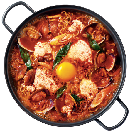 プデは韓国語で部隊、チゲは鍋の意味で軍隊で食べられていた事が由来となった料理。ニンニクがしっかり効いたパンチのあるスープとランチョンミートやソーセージなどにインスタント麺を加えたジャンクな味わいがやみつきに。辛ラーメンの旨味と辛味が効いた王道のチゲ料理です。