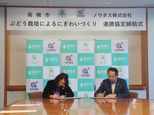 高槻市とノウタスは農業を資源としたまちづくりの取り組みを共同で行うことで合意し、連携協定を締結しています。