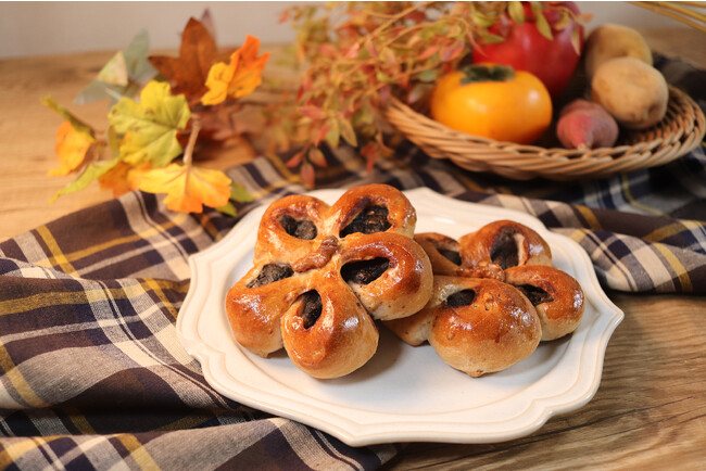 商品特徴:香ばしい胡桃を練り込んだ生地に、上品な甘さのごまあんを包んだ、秋にピッタリなあんぱんは、冬支度のおやつにピッタリ。