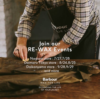 バブアー RE-WAXイベント開催店舗・日程■バブアー 名古屋店 7月27日(土)28日(日)
