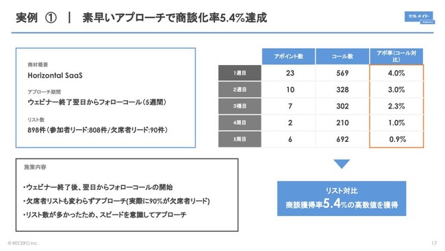 BtoB SaaSの販売支援・インサイドセールス支援事業を展開するRECERO株式会社は、企業のインサイドセールス責任者・担当者向けに、「【実例付き】ウェビナーからの商談化数を増やすアフターフォロー施策」を公開しました。