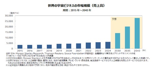 今後数年間にわたり、宇宙関連市場は技術革新が加速する中、様々な産業、地域、ビジネスにまたがってさらに拡大していくと予想しています。短期的には地政学リスクやインフレ懸念でボラティリティが高まる可能性はありますが、最終的には企業業績の伸びが長期的な株価上昇の牽引役になると想定しています 。