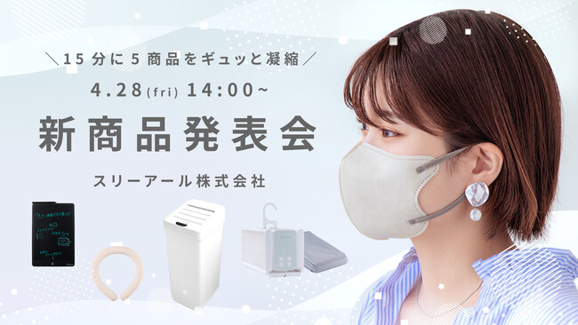 15分間でテンポ良く、新商品のマスクやこれからの初夏や梅雨にピッタリの人気商品を5つ紹介します。事前の申込みは不要で、メディアの方はもちろん一般の方もご視聴いただけます。