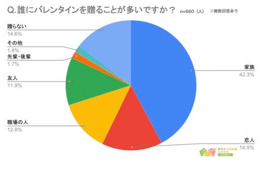 ・バレンタインにプレゼントを贈る人は7割弱、贈る相手は「家族」が最多