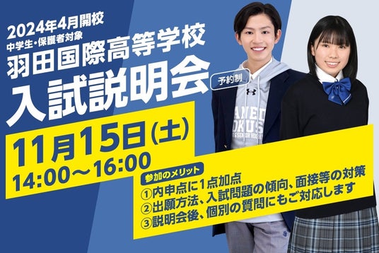 羽田国際高等学校(東京都大田区 校長:簡野裕一郎)では、10月25日(土)、11月1日(土)と2週連続「秋の学校説明会」を開催し、500名以上の受験生・保護者の皆様にご参加いただきました。この場をお借りして、改めて御礼を申し上げます。