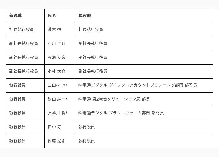 株式会社電通デジタル(本社:東京都港区 代表取締役社長執行役員:瀧本 恒 以下、電通デジタル)は、取締役会において2024年度の業務執行体制を決定いたしましたのでお知らせします。