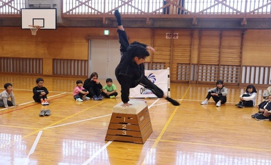 亀山氏による飛び箱を使ったあん馬のデモンストレーションでは、会場から驚嘆の声が上がりました。子どもたちは前転・後転などの基礎的な運動を習得し、より難易度の高い技にも果敢に挑戦しました。見学していた教員からは、「体育の授業とは違う指導法でとても勉強になった」「ちょっとしたコツを掴むことで、子どもたちがどんどん上達していくのが驚きだった」といった声が寄せられました。