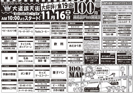 第19回100円商店街plus午前10時からは、今回で19回目を迎える「100円商店街Plus」がスタート。