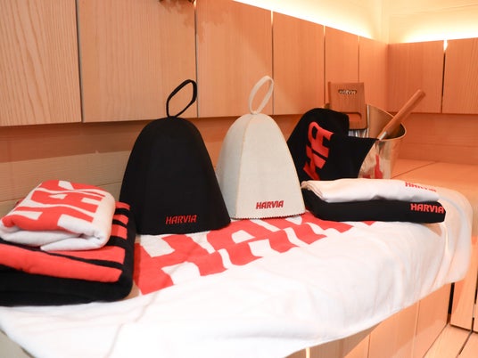 左からハルビアジャパンオリジナルのバスタオル、サウナタオル、サウナハット、Tシャツ