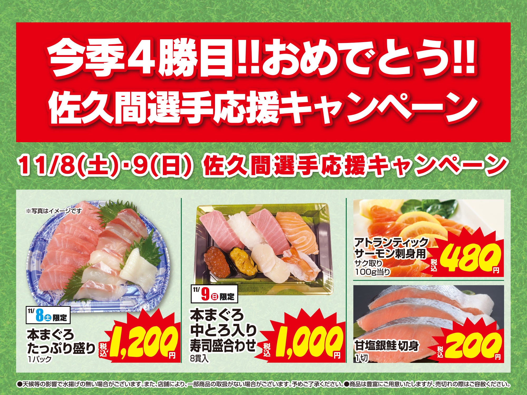 角上魚類ホールディングス株式会社(以下、角上魚類)では、スポンサー契約を締結している女子プロゴルファー佐久間朱莉選手の今季4勝目を祝し、応援キャンペーン第三弾を行います。