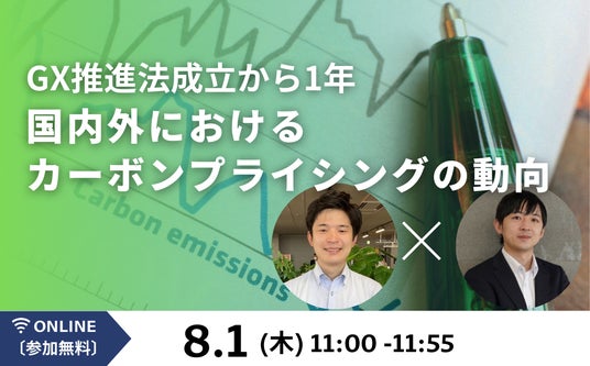 八千代エンジニヤリング株式会社(本店:東京都台東区、代表取締役社長執行役員:高橋 努)は、無料オンラインセミナー「GX推進法成立から1年。国内外におけるカーボンプライシングの動向」を8月1日(木)に開催します。