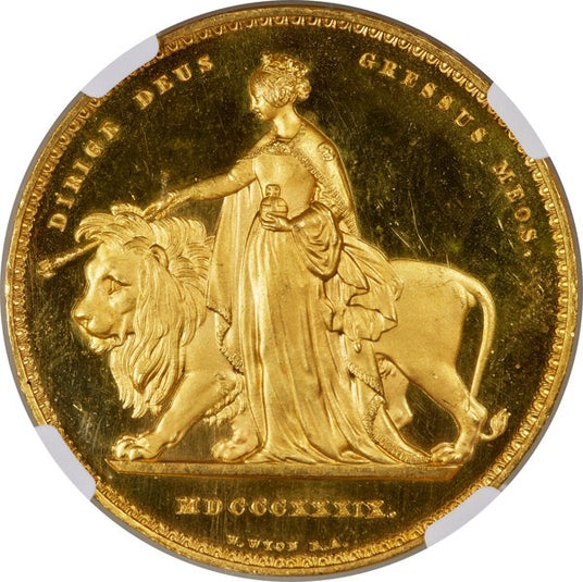 ・ 1839年 ヴィクトリア女王 ウナ&ライオン 5ポンド金貨 NGC PR62 Ultra Cameo