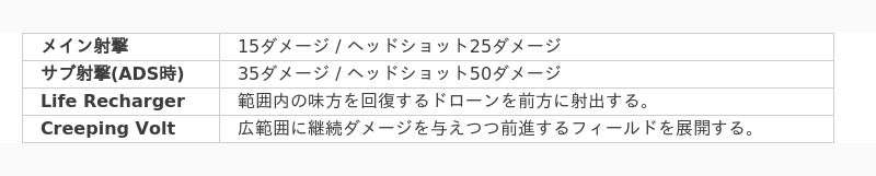 メインスキル「Life Recharger」は、射出したドローンから範囲内の味方を回復する円形のフィールドを展開します。