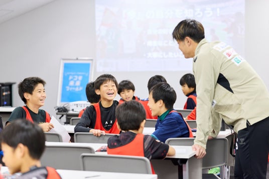 当日は、抽選で選ばれた小学4年生から6年生までの子どもたちとその保護者、40組/80名が参加し、サッカー教室や職業講話、選手サイン会&質問会、デジタルアートなどを体験しました。