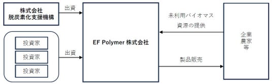 株式会社脱炭素化支援機構(代表取締役社長:田吉禎彦、英語名称:Japan Green Investment Corp. for Carbon Neutrality(JICN))は、EF Polymer株式会社(本社:沖縄県国頭群恩納村、代表取締役:ナラヤン・ラル・ガルジャール。以下、「EF Polymer」)の資金調達に対して3.2億円を支援決定し、出資を実行しました。