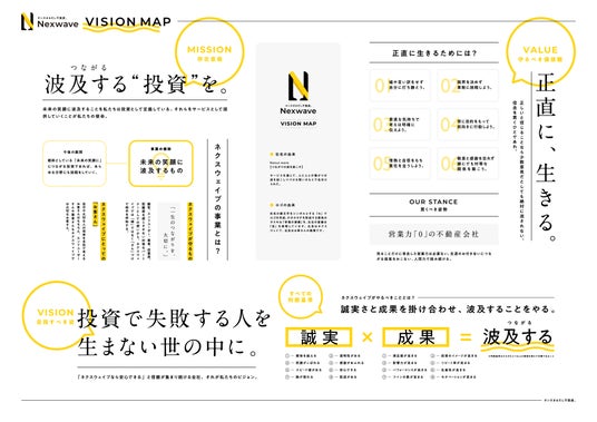 ネクスウェイブの「投資で失敗する人を生まない世の中に。」というビジョンが生まれたのは、代表の木下がネクスウェイブを設立する前、ある不動産会社でたまたま対応した一本のクレーム電話がきっかけでした。それは、無理な売り込みによって不動産投資に手を出すも、運用が上手くいかず生活に行き詰まった人からの電話でした。怒りと後悔が入り乱れた声を電話越しに聞いたとき、木下はその会社の一員だった自分が恥ずかしくてたまらなくなりました。そこで、投資家にも社員にも⼆度とあんな思いをさせない、「投資で失敗する人を生まない世の中」に変えるために、ネクスウェイブを設立するに至りました。