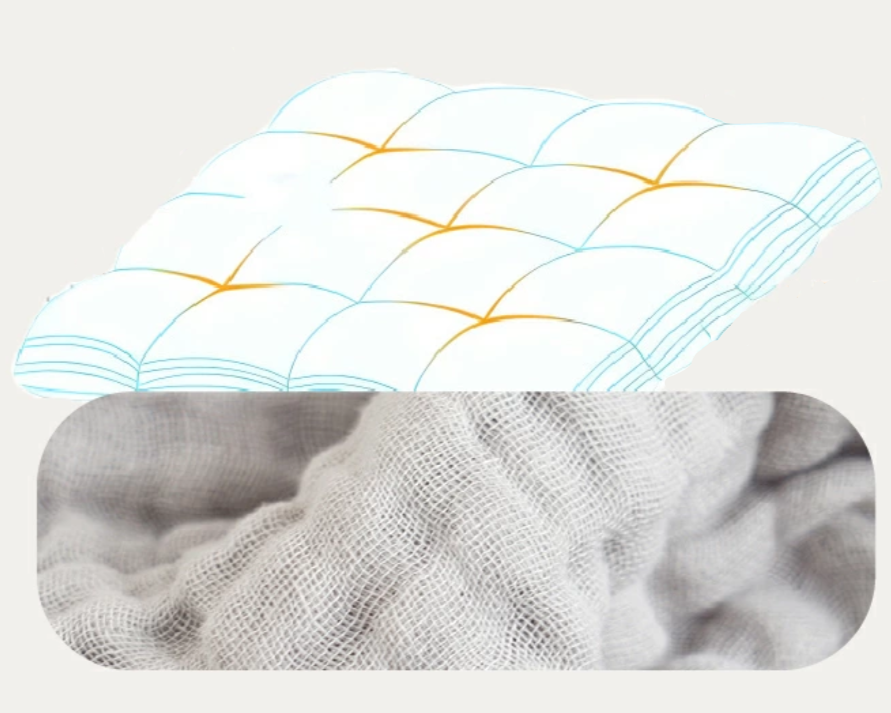 ふっくら感だけでなく、乾きやすさ・扱いやすさ・洗いやすさを日常基準で検討。ガーゼの層構成や目の細かさ、端の縫製、使う→洗う→干す→また使うの循環が滞らないことを指標に磨き込みました。結果、“軽くて速く乾くから、気兼ねなく使える”一枚に仕上がっています。