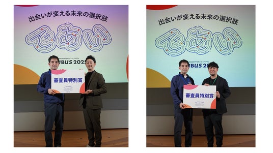 【左写真】:Spiral Innovation Partners賞受賞 (右: Spiral Innovation Partners株式会社 ジェネラルパートナー 岡様) 【右写真】:ユニッジ賞受賞 (右: 株式会社ユニッジ Co-CEO 土井様)
