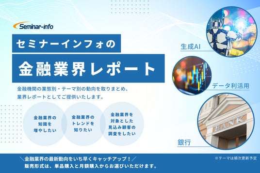 株式会社セミナーインフォ(本社:東京都千代田区 代表:小西 亘)は、金融機関の最新動向について、わかりやすくコンパクトにまとめたレポート「金融業界レポート」の提供を開始いたしました。