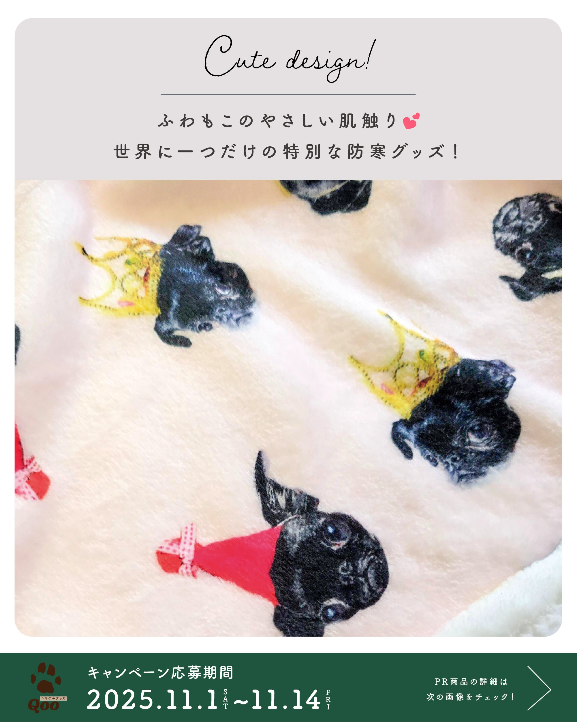 株式会社PHOTOPRIが運営する、ペットの写真をプロのデザイナーがオリジナルのうちの子グッズに仕上げるEコマースプラットフォーム「うちの子グッズQoo」( https://uchinoko-goods.jp/ )は、『うちの子似顔絵ブランケット』(https://uchinoko-goods.jp/products/nigaoe-blanket)の魅力と心温まる価値を共に発信してくださるPRモデル(モニター)を、2025年11月1日より募集開始いたします。