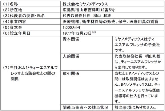 当社の子会社であるティーエスアルフレッサ株式会社(本社:広島県広島市、代表取締役社長:高橋卓詩、以下「ティーエスアルフレッサ」といいます)は、2025年9月1日付で医療機器専門商社である株式会社ミヤノメディックス(本社:広島県福山市、代表取締役社長:桐山和雄、以下「ミヤノメディックス」といいます)の全株式を取得し子会社化いたしましたので、下記のとおりお知らせいたします。