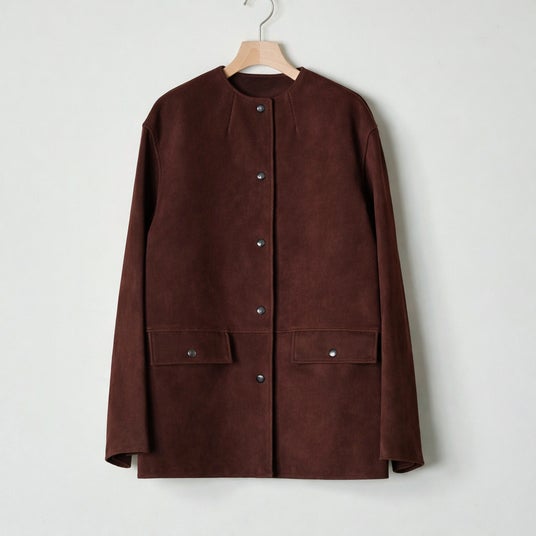 ID26S-JK01 Collarless Suede Jacket (Dark Brown)