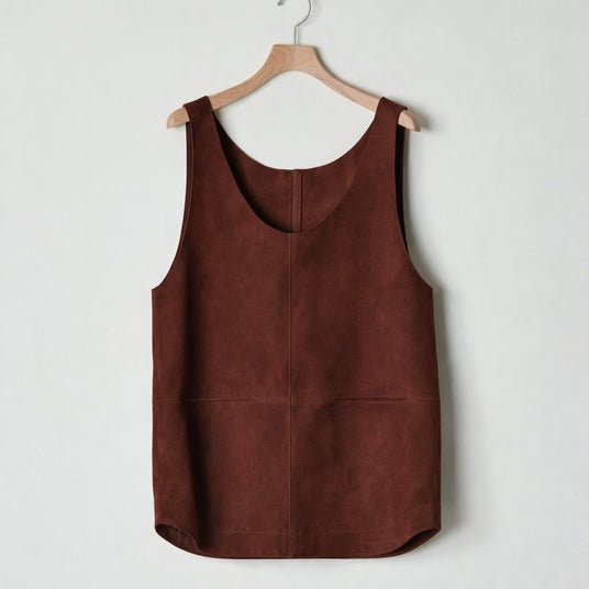 ID26S-TP01 Paneled Suede Tank Top (Dark Brown)