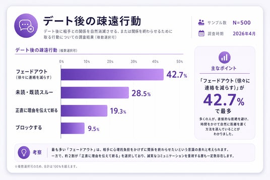 図1:デート後の疎遠行動に関する調査(Yoitoki調べ、2026年4月、N=500)