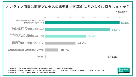 面接プロセスの迅速化には、「移動時間が不要」な点と「スケジュール調整の容易化」が貢献