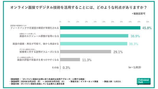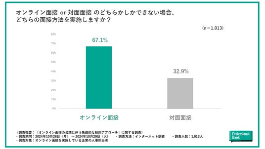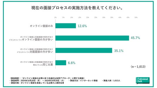 株式会社プロフェッショナルバンク(本社:東京都千代田区、代表取締役社長:呑田 好和)は、オンライン面接を実施している企業の人事担当者を対象に、オンライン面接の台頭に伴う先進的な採用活動の実態を調査しました(有効回答数:1,013名)。