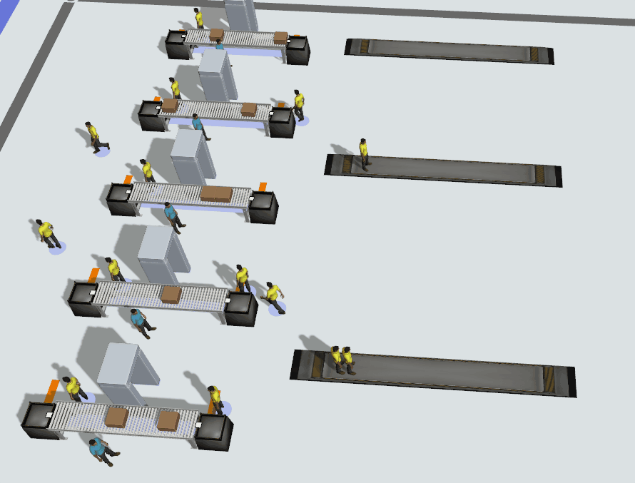 FlexSimには強力なプロセスフロー機能が搭載されています。プロセスフロー機能を使うことで、ピッキング順序や、搬送経路、工作機械などのキャパシティを考慮に入れた複雑なプロセスを瞬時に作り上げることができます。スクリプトの直接編集も可能です。