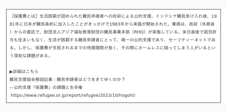 制度的に取り残されている社会課題の一つである「日本の難民問題」に対して、多大な寄付をいただきましたことに心より感謝しつつ、日本に逃れてきた難民が再びここ日本で命の危険にさらされることがないよう、支援に取り組んでまいります。