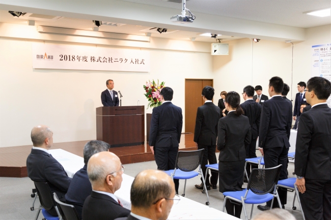 福島県郡山市で「平成30年度 株式会社ニラク 入社式」が行われ、24名の新入社員を迎え入れました。