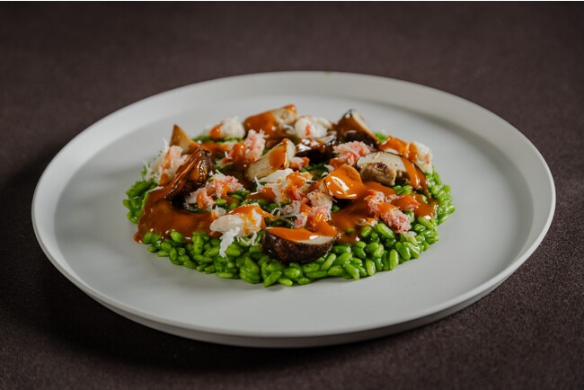 XEX ATAGO GREEN HILLSのシェフが腕をふるい、冬の食材をふんだんに使用した料理の数々は絶品ばかり。味わい深いカラスミとふっくら仕上げた鱈を使用した「鱈 九条ネギ スパゲッティ 唐墨」やこの季節だからこその香りと味が愉しむことのできる「ズワイ蟹と冬野菜のピッツァ」「海老のマリネ カリフラワームース アメリケーヌ」など、心も体も温まるラインナップでご用意いたしました。