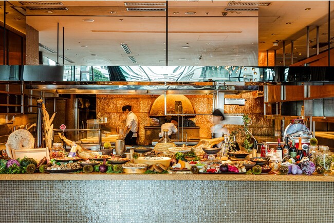 ワンフロア約890平方メートル を独占する「XEX 日本橋」。店内は大きな窓に囲まれた開放的な空間で、シェフ達の姿が見えるオープンキッチンが魅力の一つ。ブッフェに並ぶ料理やスイーツ達の味はもちろん、華やかな見た目でも愉しませてくれます。シェフおすすめの香りと食感を楽しむことのできる「ズワイガニと下仁田葱のマリナーラ」や列ができる程に人気のリゾットは「削りたてグラナーノチーズと黒トリュフのリゾット」で仕上げています。活気のある空間で素敵なランチのひと時をお過ごしください。