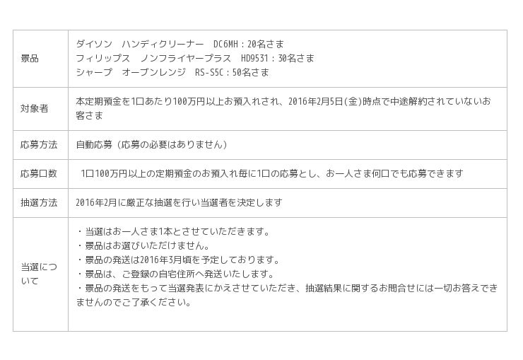 ■さらに、1口100万円以上お預入れの方の中から抽選で合計100名さまに最新の人気家電をプレゼント!!