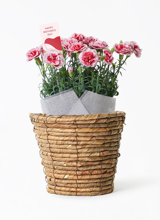 カーネーション 鉢花 いちごホイップ ブラウンバスケット