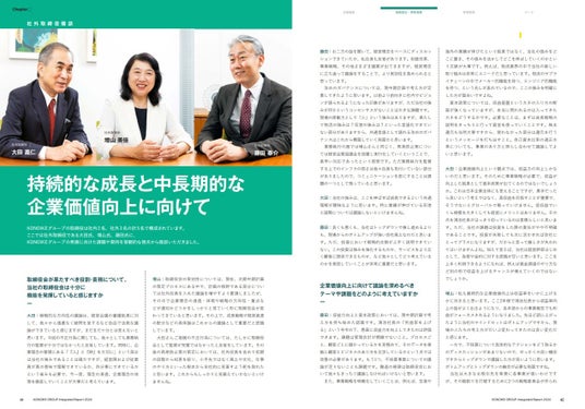 えた成長を遂げるために必要なことは何か、お三方の思いやお考えを4ページにわたり掲載して