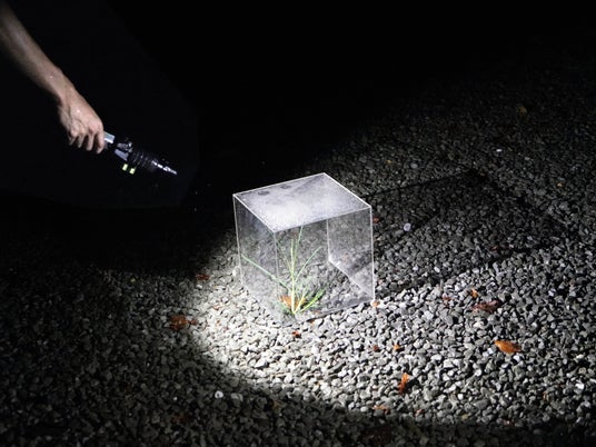 2.影さがし手持ちタイプのステレオライト(TM)️で、様々なオブジェを照らし、迫り来る影を探索する広場。