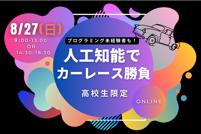 子ども向けプログラミング教育を行う株式会社プロキッズ(本社:東京都台東区、代表取締役社長:原 正幸、以下 プロキッズ)は、この夏、高校生向け夏休み特別企画としてPythonプログラミング体験イベント「人工知能でカーレース勝負」をオンラインで開催します。