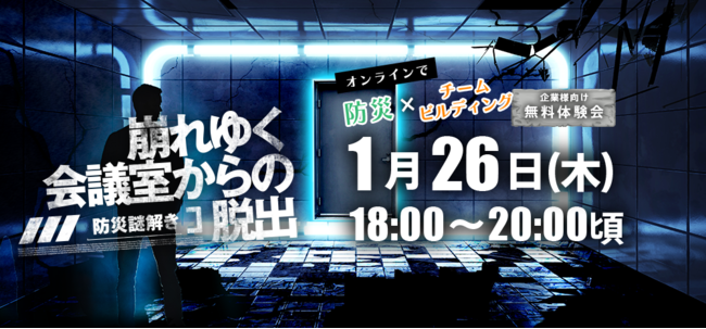 BtoBイベントの企画・運営を行う株式会社IKUSAは、2023年1月26日(木)にオンラインでチームビルディングしながら防災を学べる「防災謎解きONLINE 崩れゆく会議室からの脱出」の企業向け体験会を実施します。